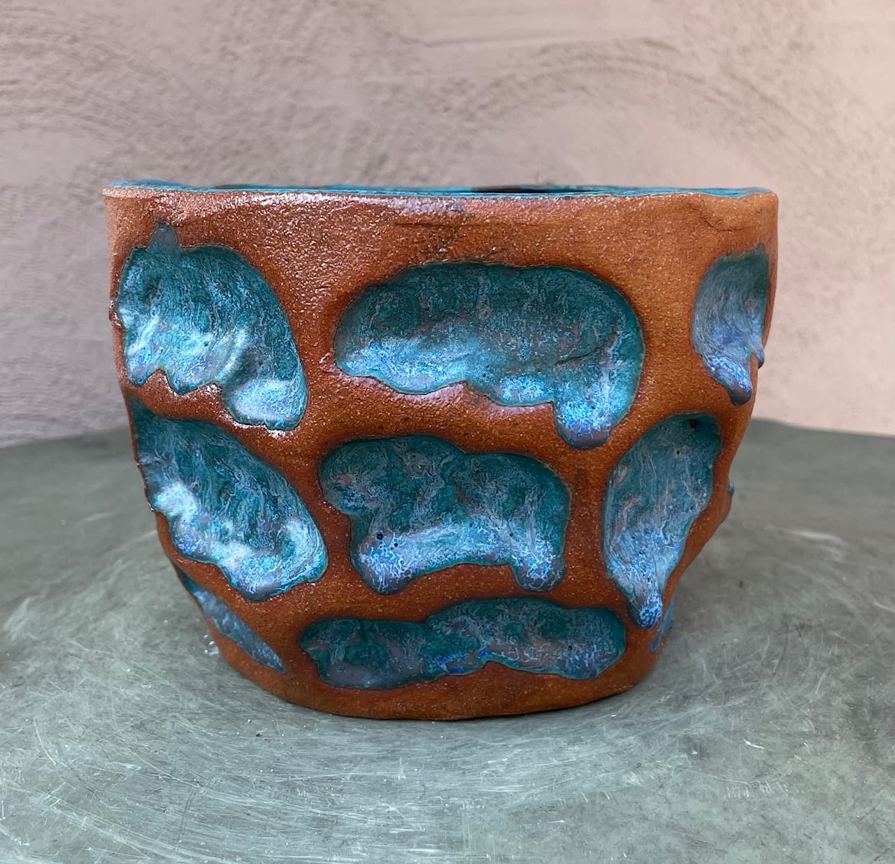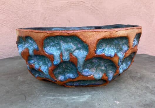 Each piece is hand built without the use of a potters wheel, and is high fired to stoneware. Perfect for either indoor or outdoor. Due to the unique nature of ceramic hand-building, there will be variations to the size, shape, texture, stains and glazes used. Each piece will be one of a kind, and individually signed with the artists initials, and year that it was made. Each planter comes with a 3/4″ drainage hole.