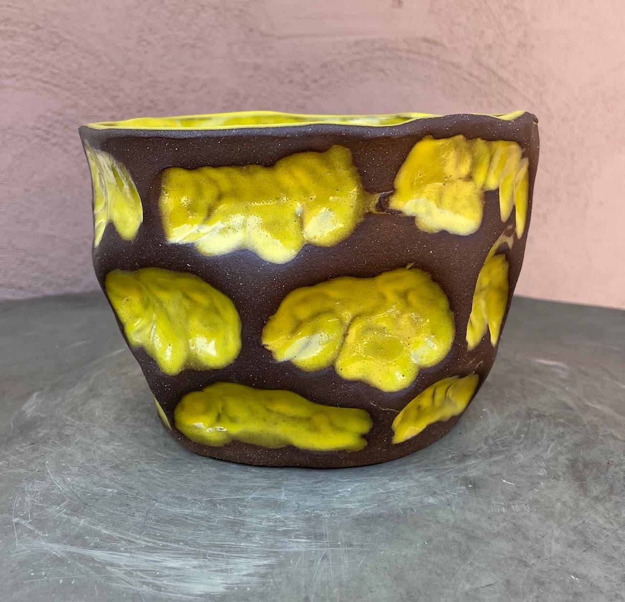 Each piece is hand built without the use of a potters wheel, and is high fired to stoneware. Perfect for either indoor or outdoor. Due to the unique nature of ceramic hand-building, there will be variations to the size, shape, texture, stains and glazes used. Each piece will be one of a kind, and individually signed with the artists initials, and year that it was made. Each planter comes with a 3/4″ drainage hole.